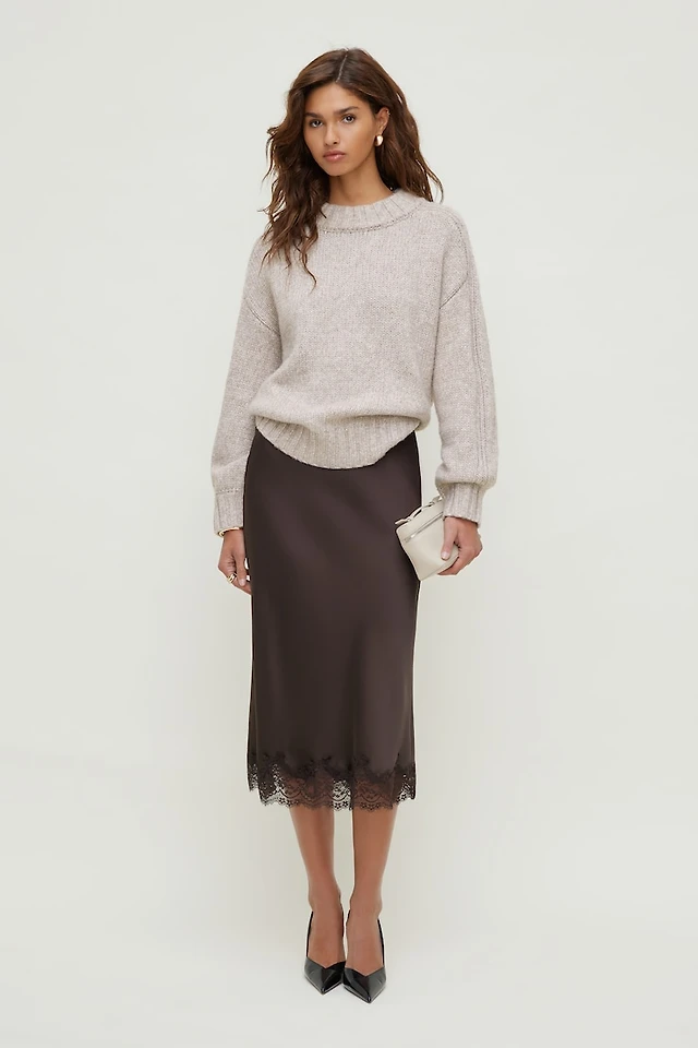 Lace Satin Midi Skirt