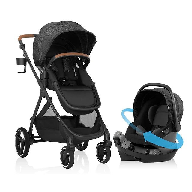 Evenflo Shyft Intuiti+ Travel System with Revolve180 LiteMax NXT SensorySoothe Infant Car Seat - Black