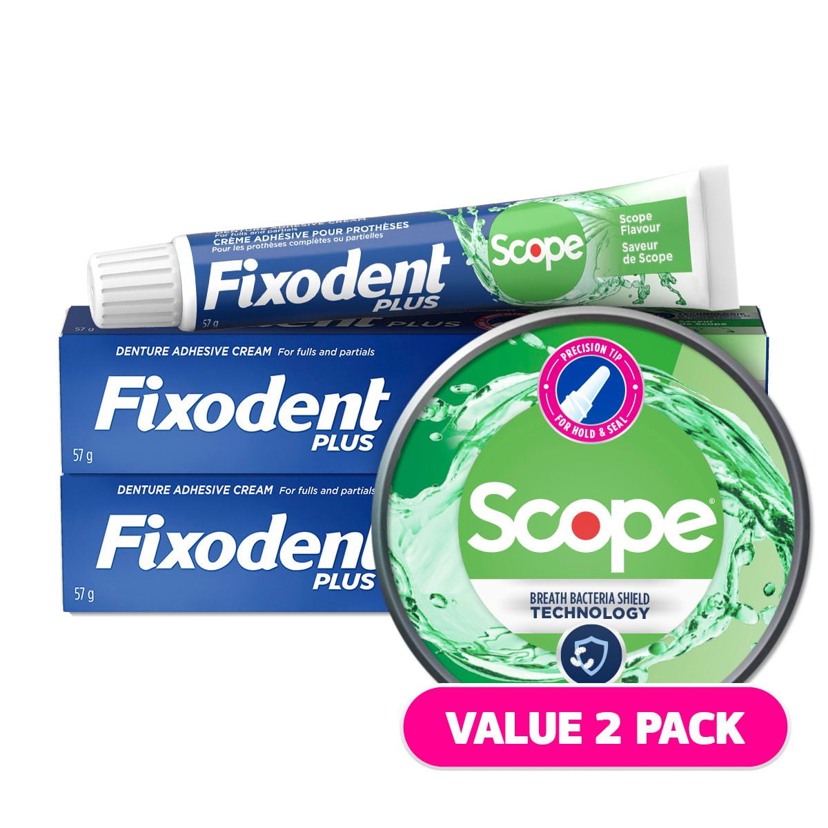 Fixodent Plus Scope Secure Denture Adhesive (Twin Pack), 2 x 57g