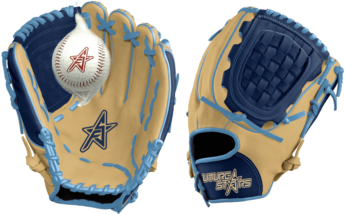 Future Stars 9" Baseball / Teeball Glove with PlaySafe Soft-Core Baseball – White with Red Stitching - Right Hand Catch