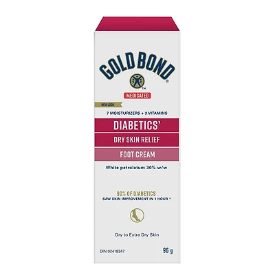 Gold Bond Ultimate Diabetics' Dry Skin Relief Foot Cream - 96g - Fast, Long-Lasting Relief for Dry, Cracked Skin on Feet & Heels - Contains 30% White Petrolatum, Plus Vitamin A, E to Soothe & Protect
