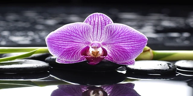 Omar Olavie - Pink Orchid on Black Stones