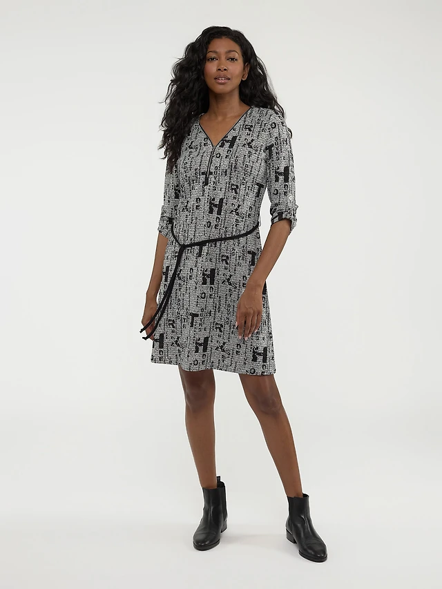 3/4-sleeve semi-fitted tunic length blouse with buttons