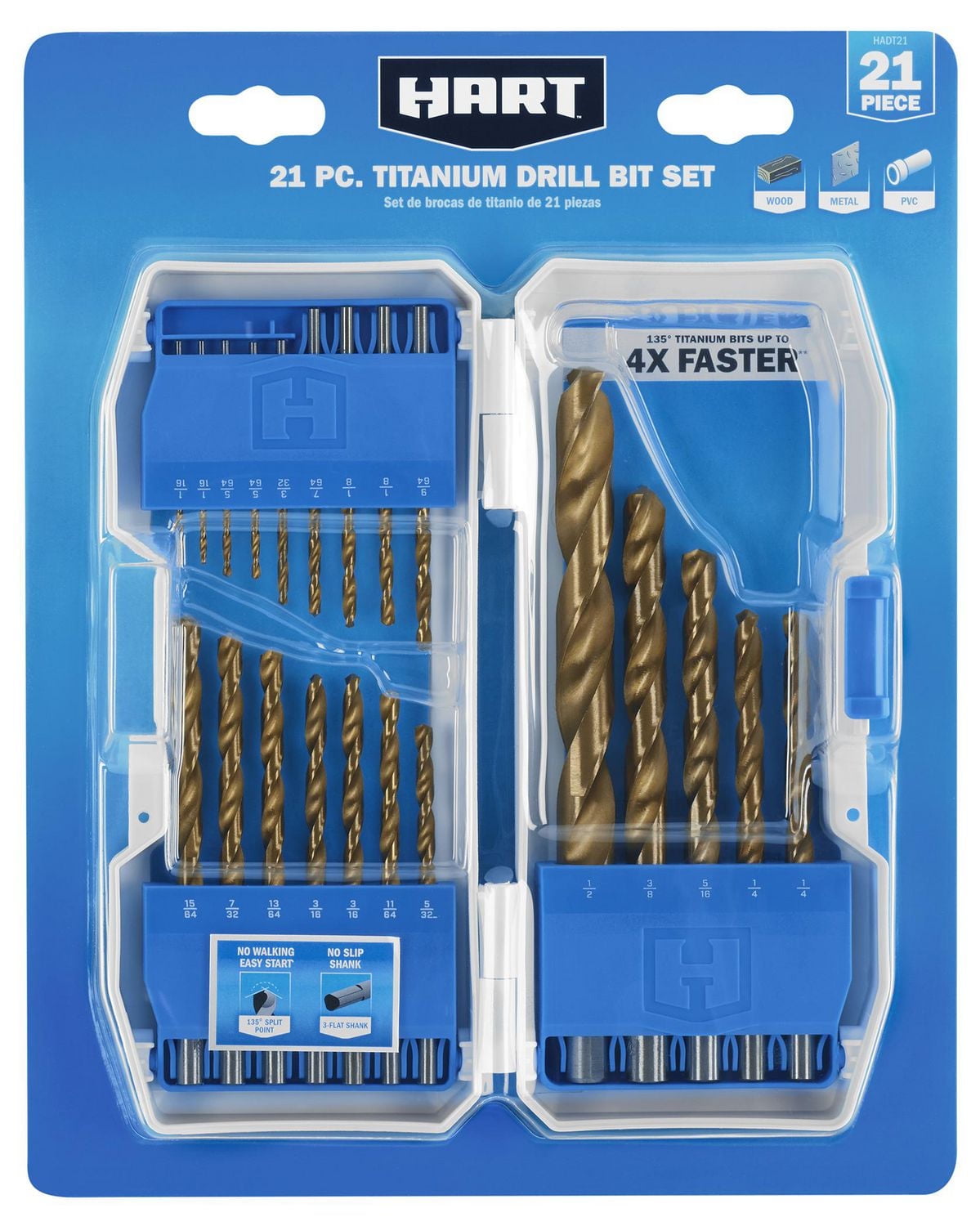 HART 21-Piece Titanium Drill Bit Set with Protective Storage Case