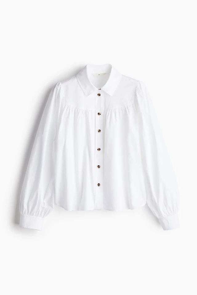 Balloon-sleeved Cotton Dress