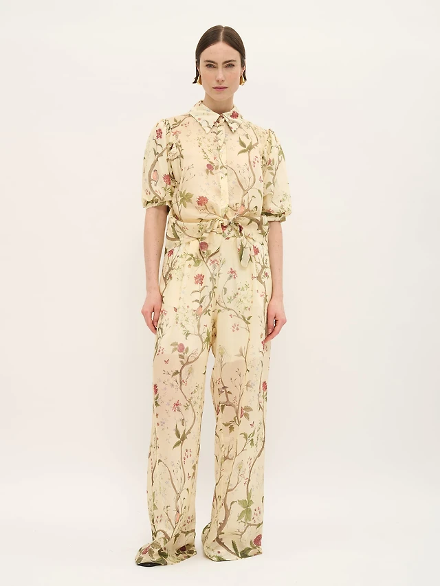 Striped Button-Down Cotton Blouse with Contrast Trim