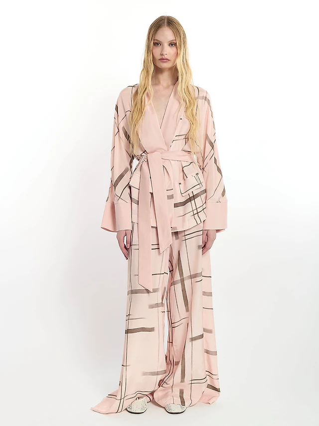 Striped Cotton Drawstring Pants with Contrast Waistband