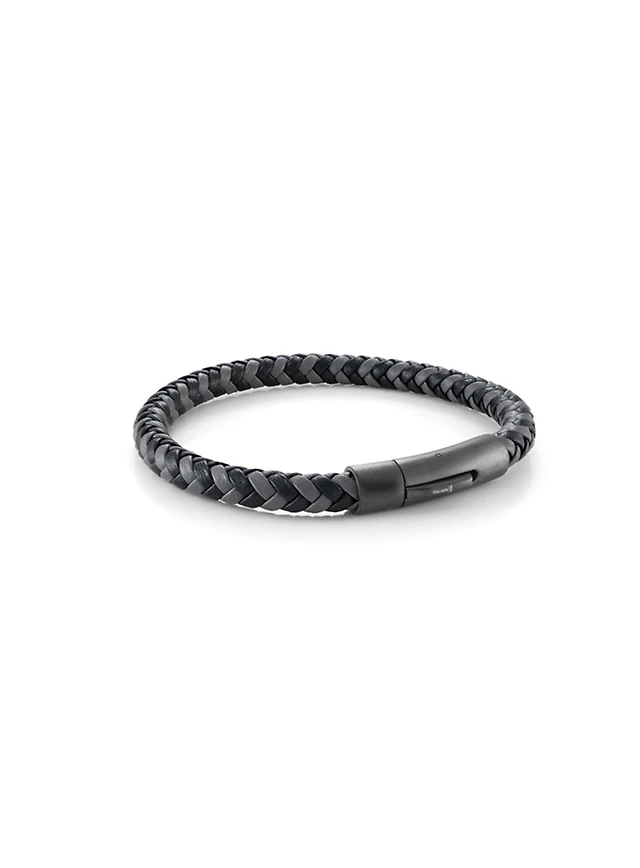 Grey and Navy Braided Leather Bracelet