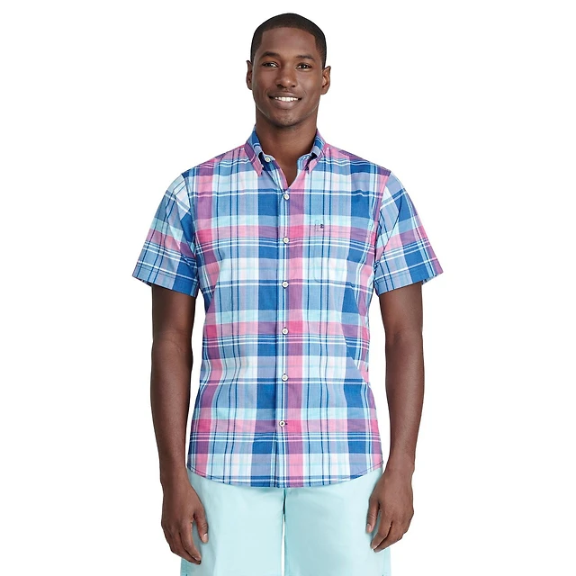 IZOD MENS SHORT SLEEVE CLASSIC PLAID WOVEN