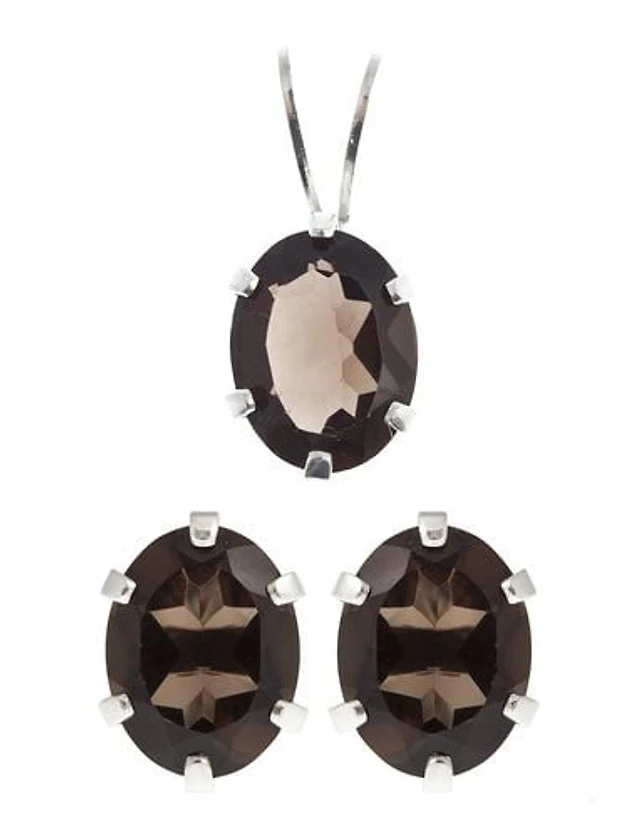 St. Silver Smokey Quartz Earrings Pendant set