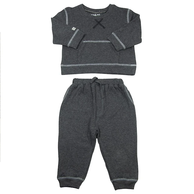 Juddlies Designs - Baby, Toddler - Breathe EZE Collection - Cotton Two Piece Jogger Set - Charcoal Grey Fleck