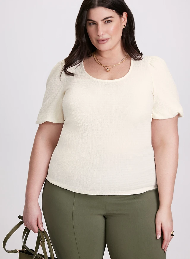 Polka Dot Blouse & Embossed Button Wide-Leg Jeans