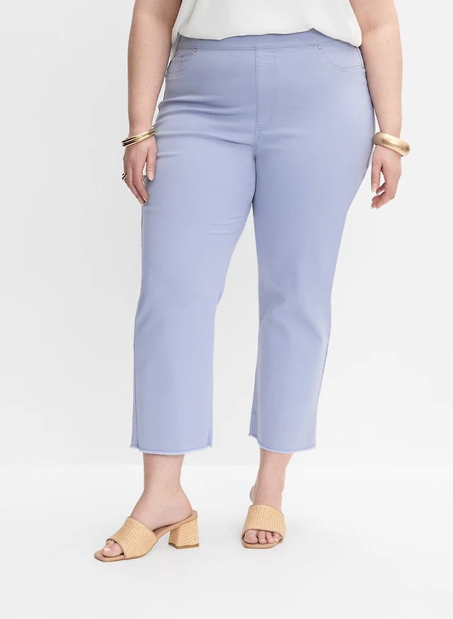 Linen-Blend Blazer & Crochet Trim Denim Capris