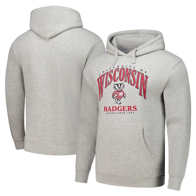 Men's Heather Gray Wisconsin Badgers Tall Arch Essential Pullover Hoodie