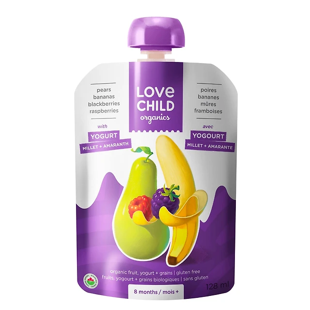 Organic Puree- Power Yo'rridge- Pears, Bananas, Blackberries, Raspberries and Yogurt ( From 6 months )