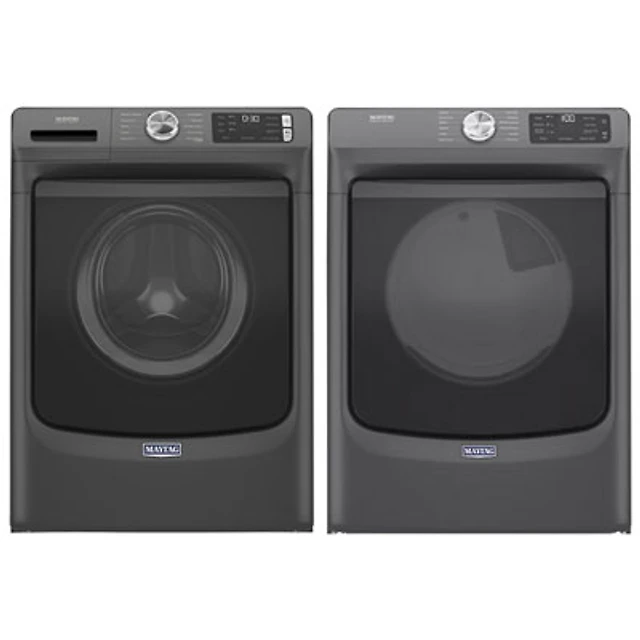 Maytag 7.3 Cu. Ft. Gas Steam Dryer & 5.5 Cu. Ft. Front Load Steam Washer- Volcano Black