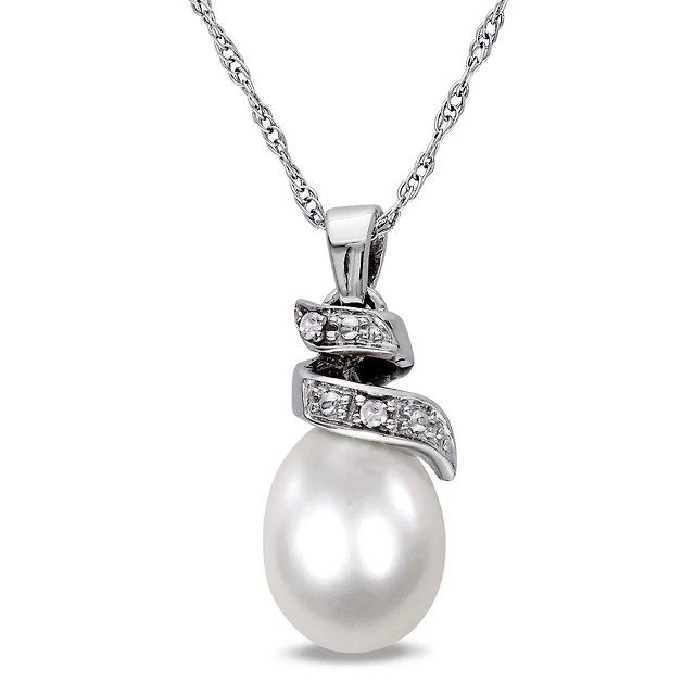 Miabella Freshwater Cultured Pearl and Diamond Accent Sterling Silver Swirl Drop Earrings