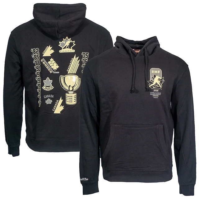 Men's Mitchell & Ness Black Hockey Canada 2025 IIHF World Junior Championship 20-Time Champions Pullover Sweatshirt