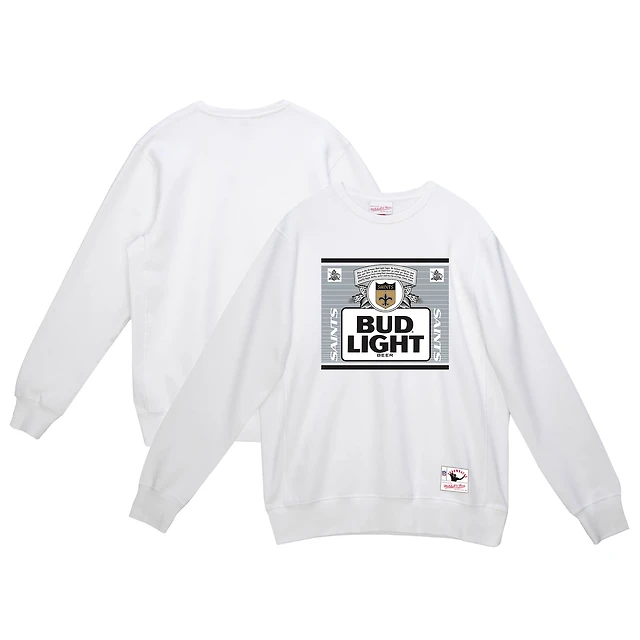 Men's Mitchell & Ness x Bud Light White New Orleans Saints The Crest Pullover Sweatshirt