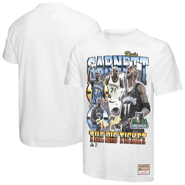 Men's Mitchell & Ness Kevin Garnett White Minnesota Timberwolves Hardwood Classics Commemorative Player Collage T-Shirt
