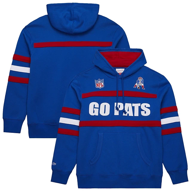 Men's Royal New England Patriots Vintage Logo Head Coach Fleece Pullover Hoodie