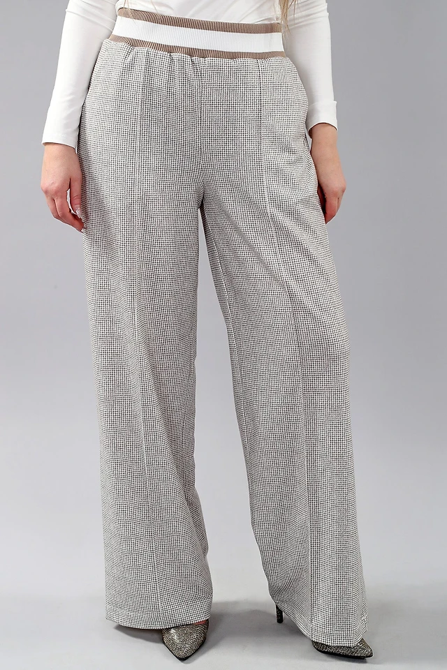 Checkered pull-on pants, European fabric