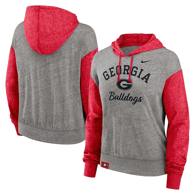 Women's Nike Heather Gray/Red Georgia Bulldogs Blitz Color Block Legacy Pullover Hoodie