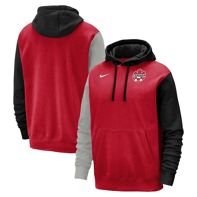 Men's Nike Red Canada Soccer Color Block Club Fleece Pullover Hoodie