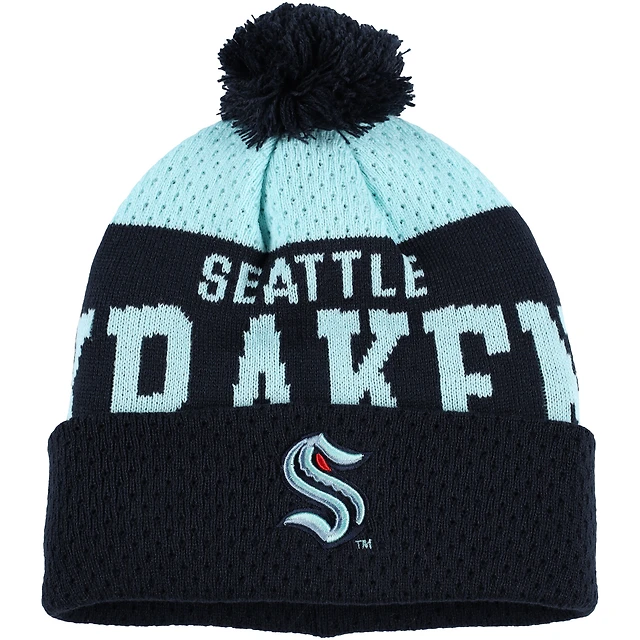 Youth Deep Sea Blue Seattle Kraken Stretchark Cuffed Knit Hat with Pom