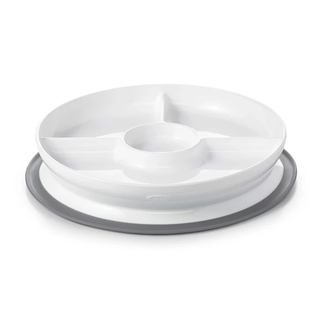 OXO Tot - Stick & Stay Suction Divided Plate - Silicone Base That Sticks Surfaces - Dishwasher Safe - Baby Feeding from 6 Months and Up - Pink - 61121300