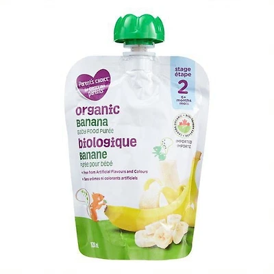 Parent’s Choice Organic Banana Baby Food Purée, 128 ml