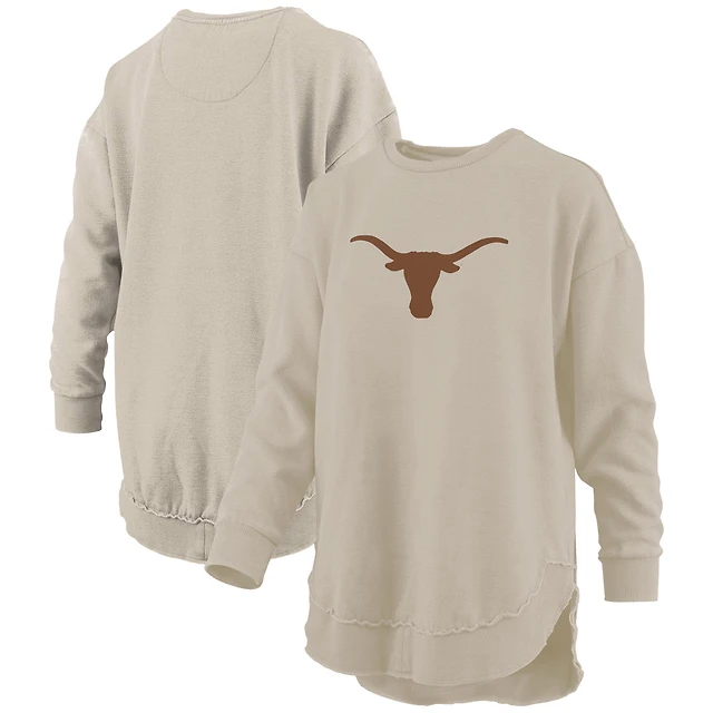 Women's Pressbox Oatmeal Texas Longhorns Plus Comfy Cairo Terry Pullover Sweatshirt