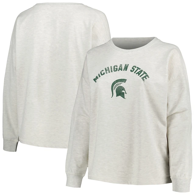 Women's Profile Oatmeal Michigan State Spartans Plus Distressed Arch Over Logo Neutral Boxy Pullover Sweatshirt