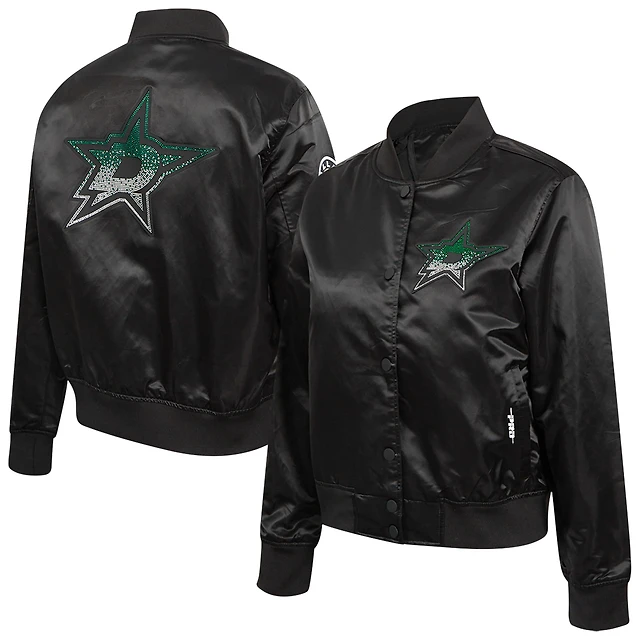 Women's Pro Standard Black Dallas Stars Rhinestone Jewels Satin Full-Snap Jacket