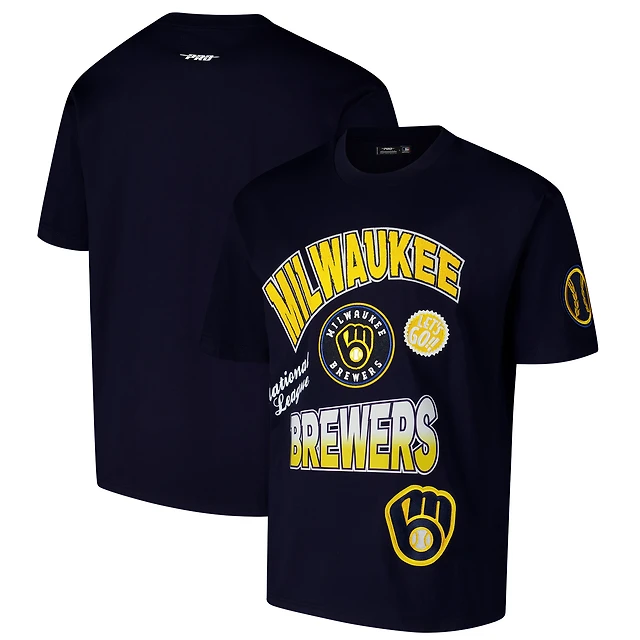 Men's Pro Standard Navy Milwaukee Brewers Turn It Up Dropped Shoulder T-Shirt