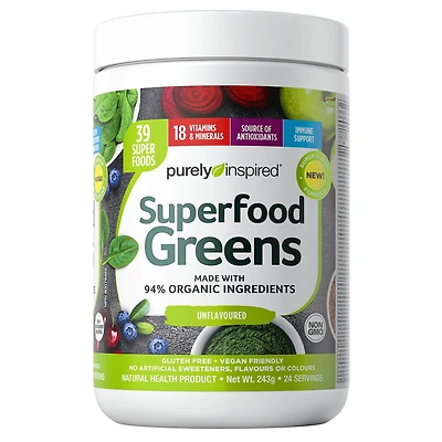 Purely Inspired Greens Powder Superfood | Super Greens Powder Organic | Fruit + Veggie Superfood Powder | Green Smoothie Powder, 24 Servings, 243 g, 24 Servings
