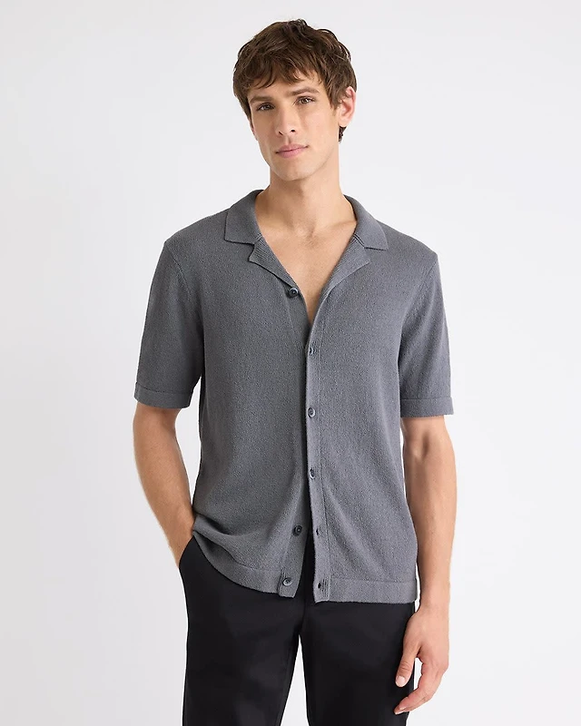 Short-Sleeve Slim-Fit Knit-Like Dress Shirt