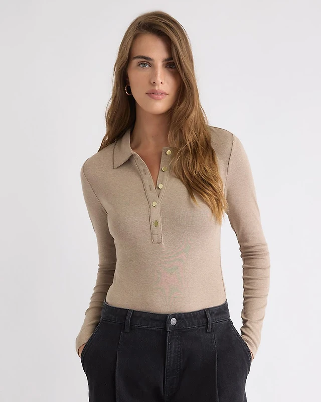 Long-Sleeve Henley-Neck Wool-Blend Ribbed Top