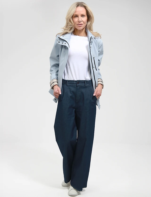 Lucie Vegan Elegant Ribbed Twill Belted Zip-up Coat with Oversized Hood by Saki