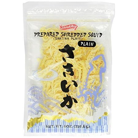 SQUID PLAIN, Shirakiku Prepared Shredded Squid Dried Squid Plain Flavor, 8 Ounce
