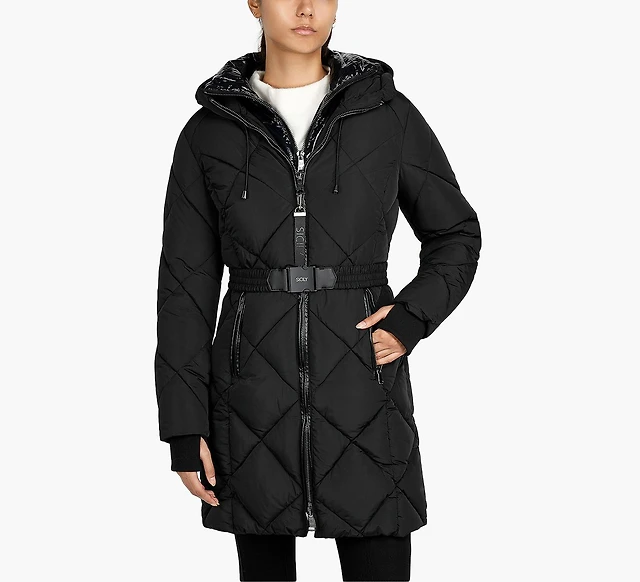 Chic Slim-Fit Quilted Down Puffer Jacket with Hood & Zip Closure by Sicily