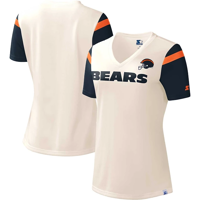 Women's Starter White Chicago Bears Kick-Starter - V-Neck T-Shirt