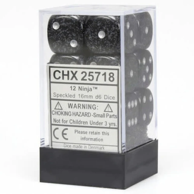 12 dés 6 16mm picotés ''Ninja''