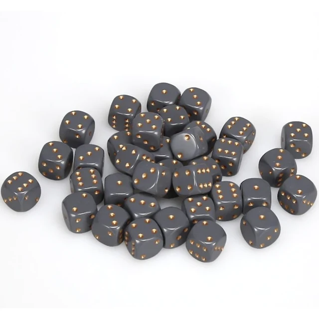 36 dés 6 12mm opaques gris foncé avec points cuivrés