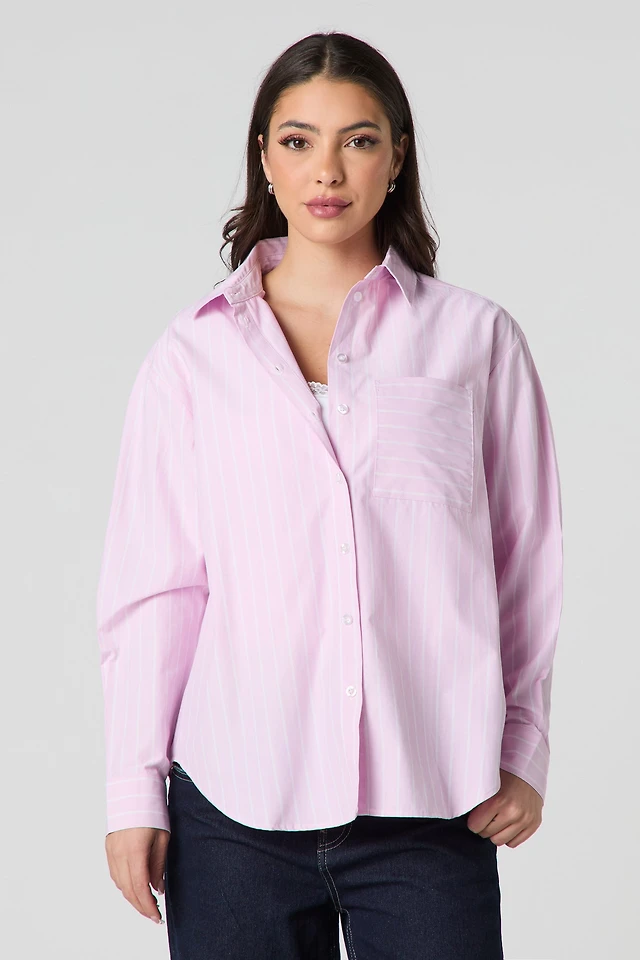 Oversized Striped Button-Up Top