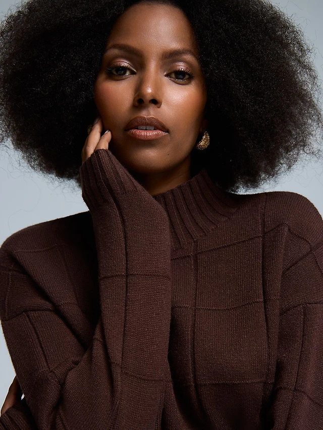 Mock Neck Dolman Sleeve Ribbed Sweater