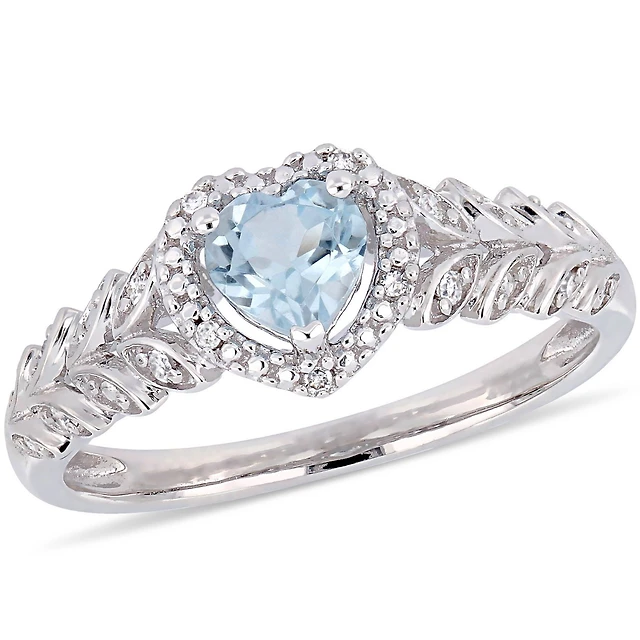 Tangelo 3/5 Carat T.G.W. Sky-Blue Topaz and Diamond-Accent 10K White Gold Halo Heart Ring