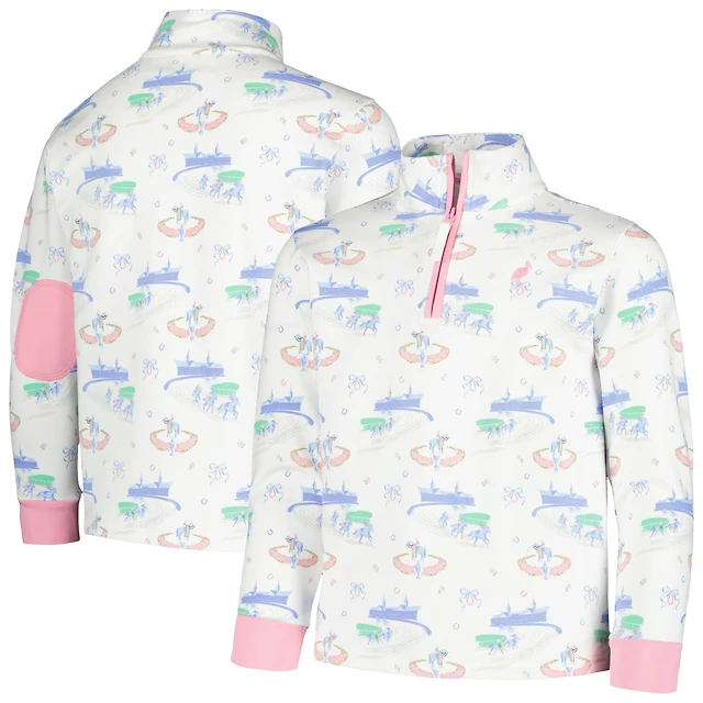 Girls Preschool White Kentucky Derby Canter Collar Half-Zip Sweatshirt