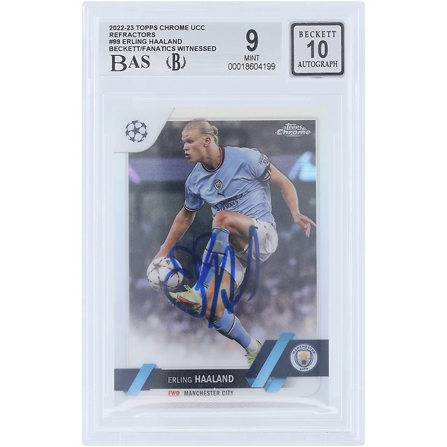 Erling Haaland Manchester City Autographed 2022-23 Topps Chrome UEFA Refractor #99 Beckett Fanatics Witnessed Authenticated 9/10 Card