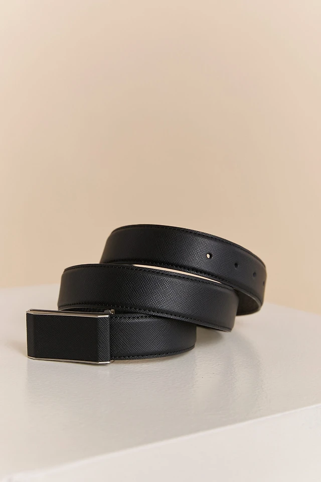 Plate buckle reversible leather belt